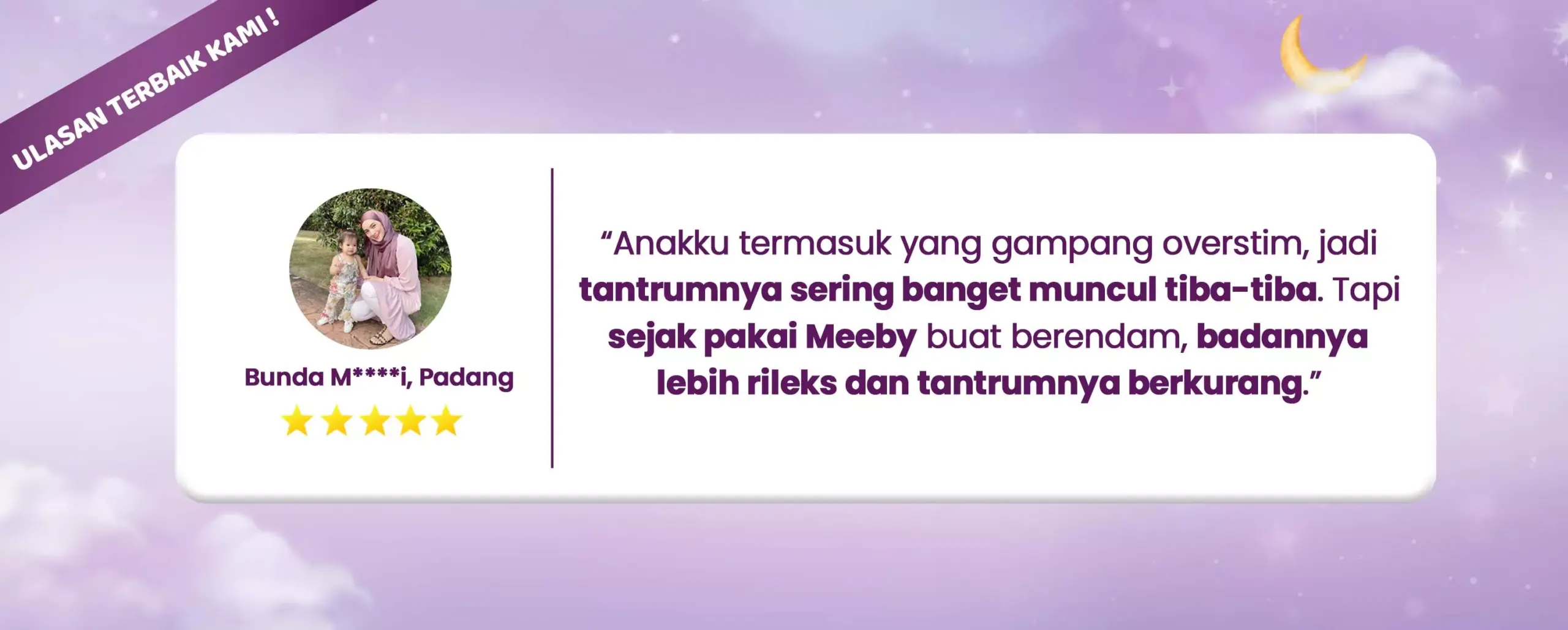 Meeby menghadirkan produk rendaman untuk si kecil dengan bahan alami pilihan yang diformulasikan khusus untuk membantu si kecil lebih rileks, tenang, dan tidur lebih nyenyak